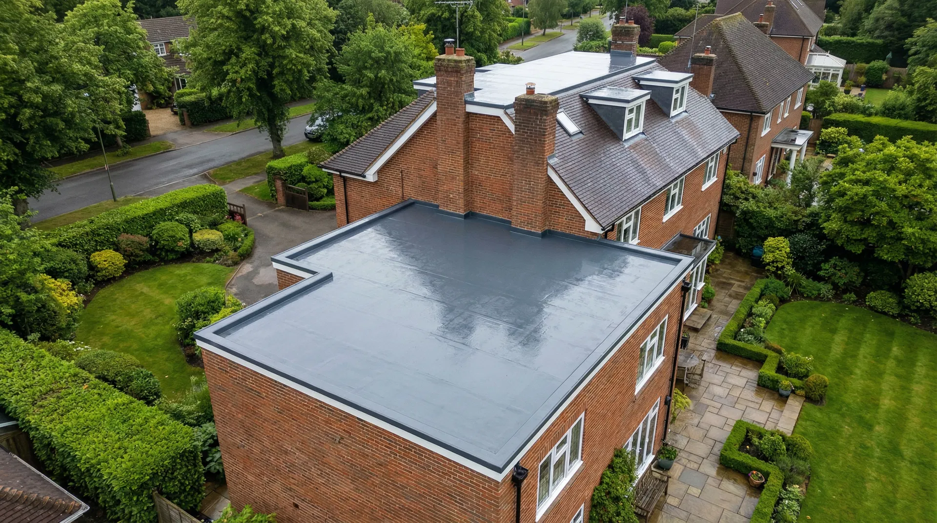 Spray-applied waterproofing that seals your existing flat or felt roof — no rip out, no scaffolding, no skips. Up to 4× the coverage of standard systems, backed by a 20-year manufacturer's warranty. Surrey flat roof specialists covering Guildford, Woking, Epsom and beyond.